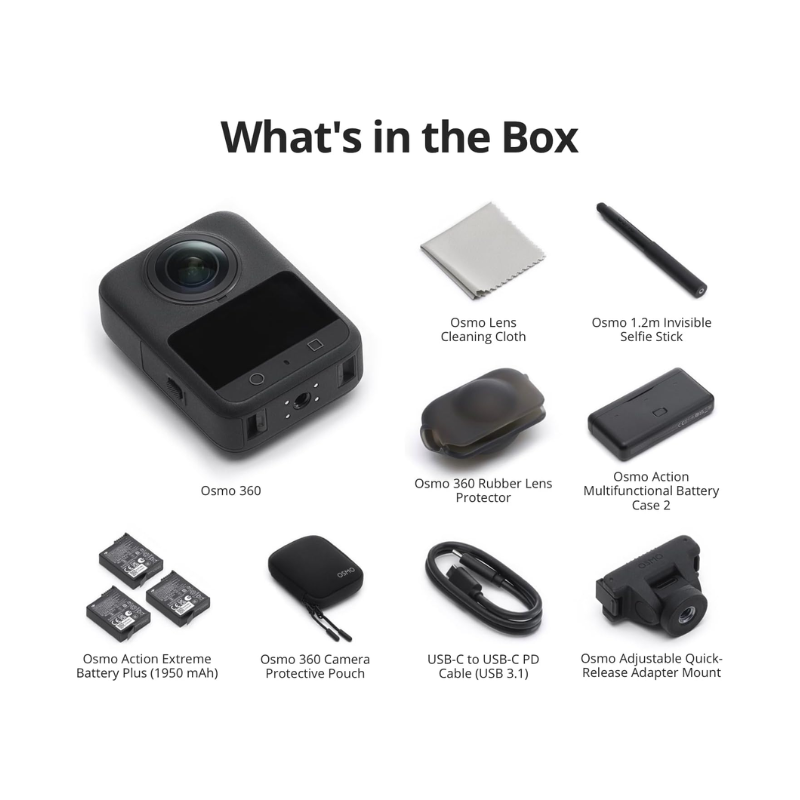 The DJI Osmo 360 Adventure Combo redefines what’s possible with compact 360 cameras. With 8K video, pro stabilization, immersive audio, and rugged build quality, it’s designed for creators who refuse to compromise. Whether you’re a traveler, vlogger, or professional filmmaker, the Osmo 360 delivers.