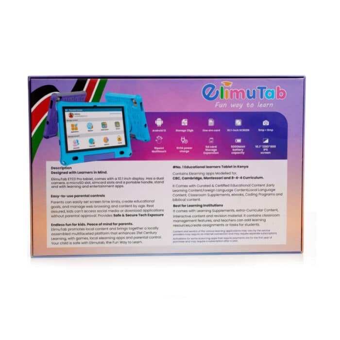The ElimuTab ET03 Pro price in Kenya is approximately KES 17,500. This tablet is designed for students and young learners who need a compact, durable device for education, multimedia, and safe connectivity.