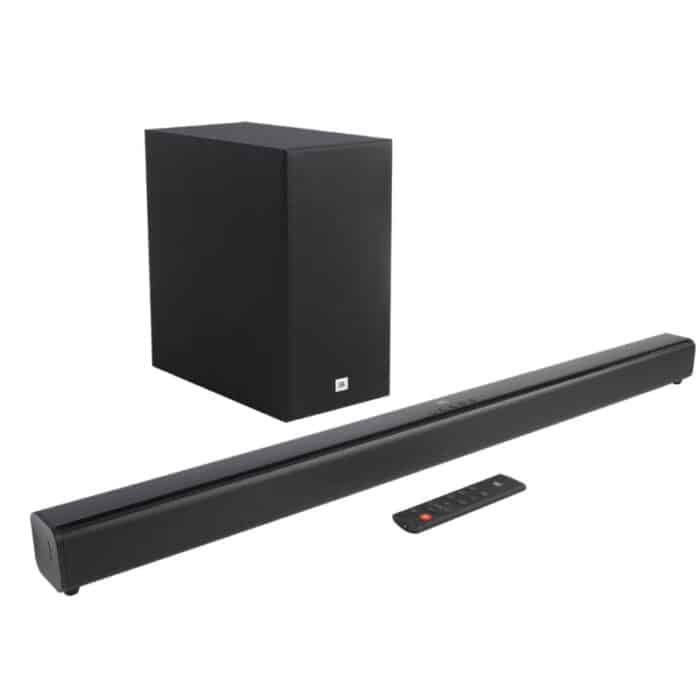 The JBL Cinema SB160 2.1ch price in Kenya is 43,500 shillings. It is a wireless soundbar that uses Bluetooth technology for streaming. With it being wireless, you are no longer constrained by cables and can place it anywhere in the room and stream content to it.